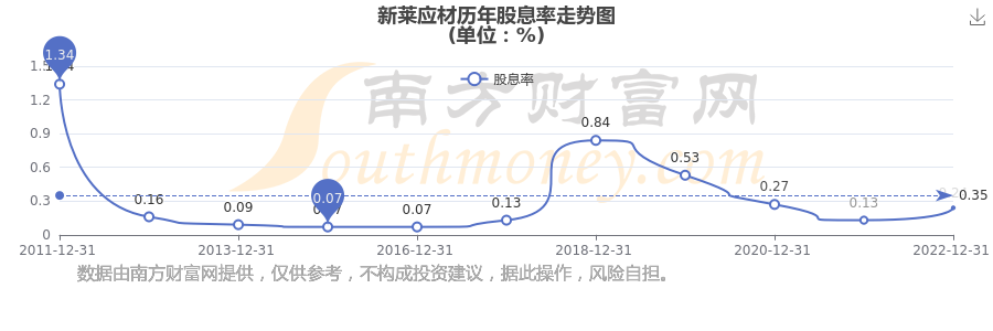近年新萊應(yīng)材年度股息率走勢(shì)如下圖: