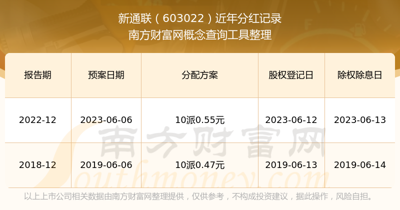 新通聯(lián)最新一次公布的分紅方案為10派0.55元。本次權(quán)益分派股權(quán)登記日為2023年6月12日,除權(quán)除息日為2023年6月13日,派息日為2023年6月13日。