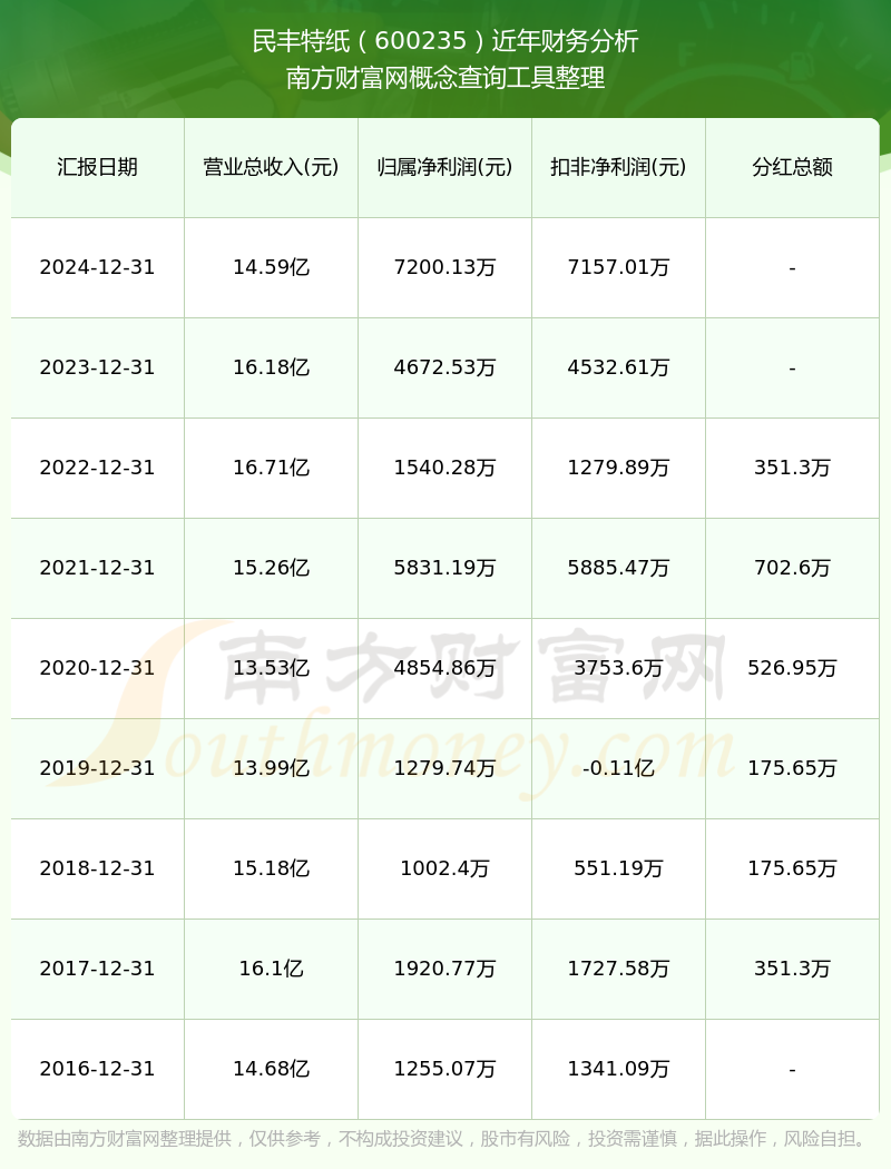 民豐特紙2024年總營(yíng)收14.59億,同比增長(zhǎng)-9.82%;凈利潤(rùn)7200.13萬(wàn),同比增長(zhǎng)54.09%;銷售毛利率16.51%。