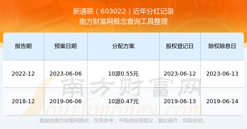 新通聯(lián)歷年分紅派息情況如下表所示: