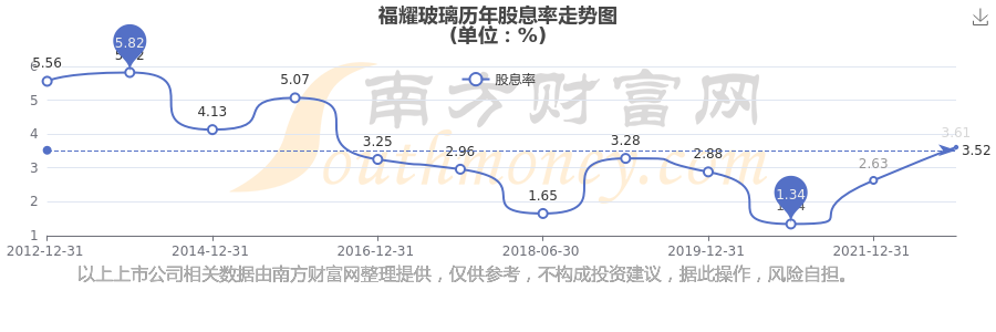 福耀玻璃歷年股息率走勢(shì)如下圖: