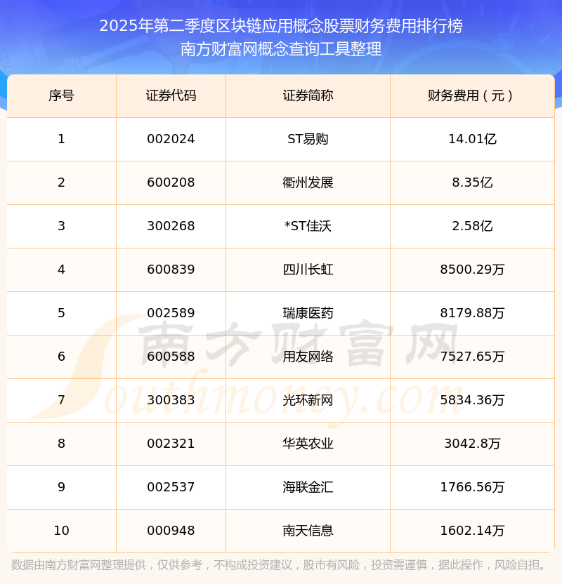 區(qū)塊鏈應(yīng)用概念股票財(cái)務(wù)費(fèi)用榜單(2025年第二季度前十名單)