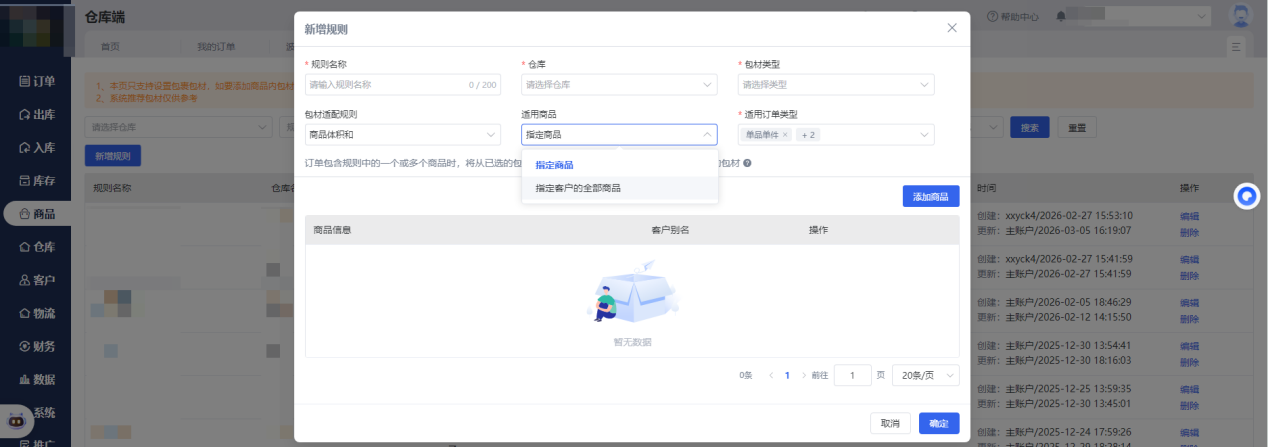 針對(duì)Shopify賣家的品牌化、差異化需求,頂妙WMS支持包材推薦功能,可按指定商品/指定客戶預(yù)設(shè)專屬包材,打包時(shí)系統(tǒng)自動(dòng)推薦,滿足客戶品牌包裝需求。