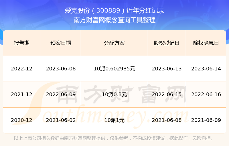 愛克股份最新一次公布的分紅方案為10派0.602985元。本次權(quán)益分派股權(quán)登記日為2023年6月13日,除權(quán)除息日為2023年6月14日,派息日為2023年6月14日。