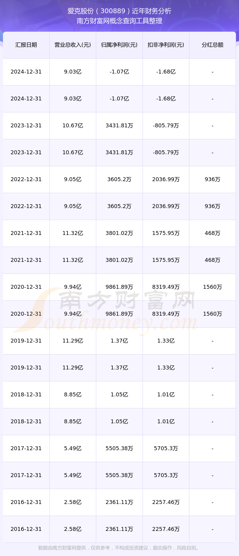 愛克股份歷年分紅派息情況如下表所示: