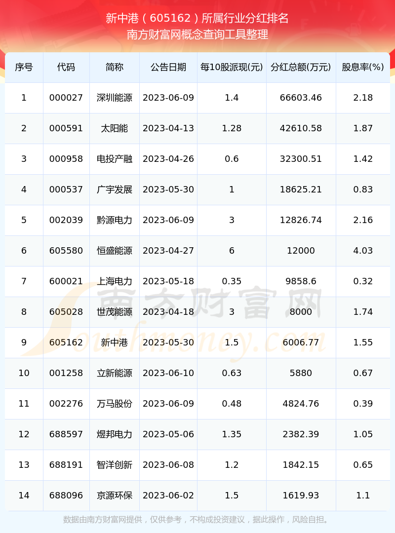 按照南方財(cái)富網(wǎng)趨勢(shì)選股系統(tǒng)統(tǒng)計(jì),新中港所屬行業(yè)為蒸汽行業(yè),蒸汽行業(yè)分紅排名情況如下表: