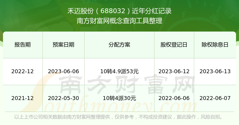 禾邁股份最新一次公布的分紅方案為10轉(zhuǎn)4.9派53元。本次權(quán)益分派股權(quán)登記日為2023年6月12日,除權(quán)除息日為2023年6月13日,派息日為2023年6月13日。
