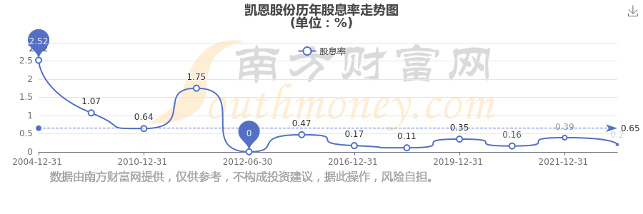 凱恩股份歷年股息率走勢(shì)如下圖:
