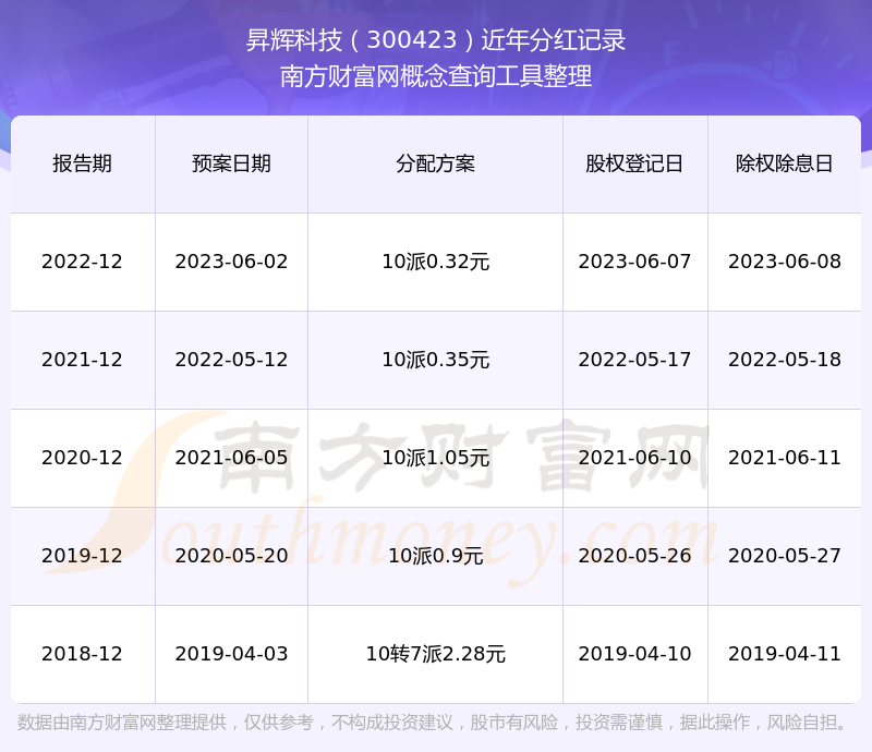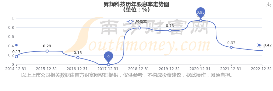 昇輝科技最新一次公布的分紅方案為10派0.32元。本次權(quán)益分派股權(quán)登記日為2023年6月7日,除權(quán)除息日為2023年6月8日,派息日為2023年6月8日。