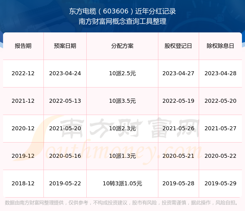 東方電纜歷年分紅派息情況如下表所示: