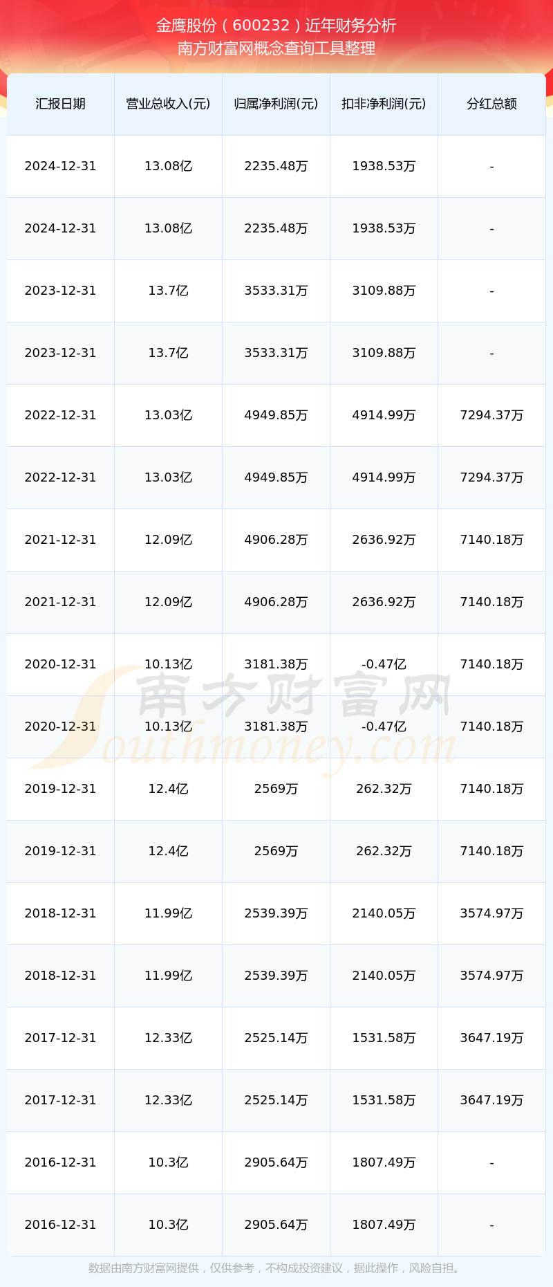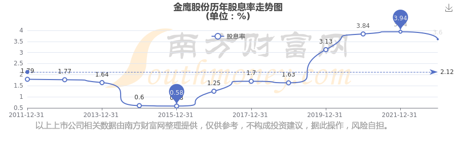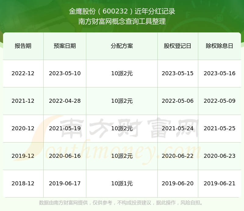 金鷹股份最新一次公布的分紅方案:10派2元。