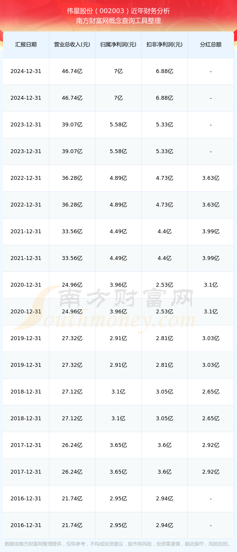 近年偉星股份分紅派息情況如下表所示: