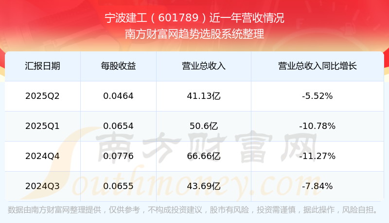 寧波建工2025年第二季度顯示,公司主營收入41.13億元,同比-5.52%;歸母凈利潤5485.81萬元,同比-7.92%;扣非凈利潤4501.06萬元,同比-5.65%;