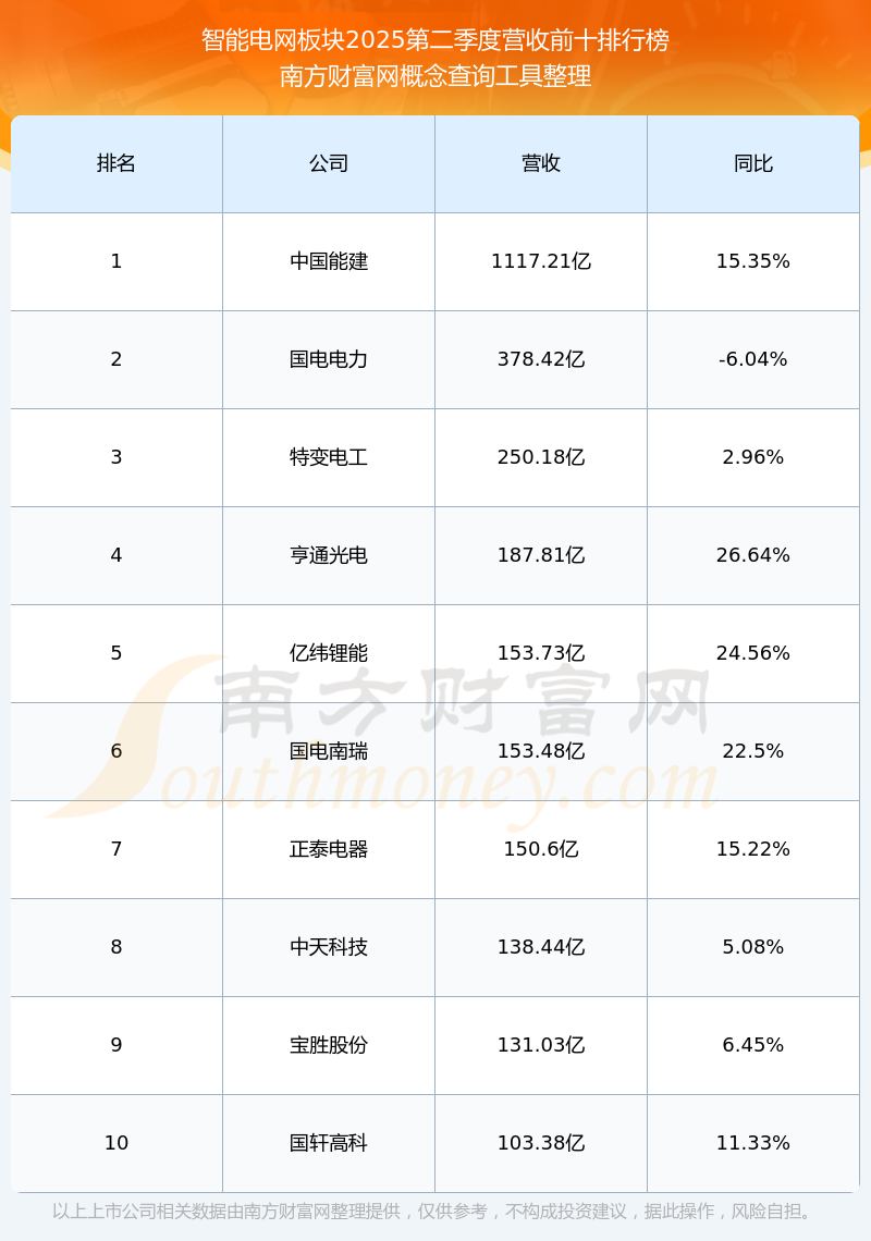 按照南方財(cái)富網(wǎng)概念查詢工具統(tǒng)計(jì),該股所屬板塊為智能電網(wǎng)板塊,該板塊共有279只股票,洛凱股份2025第二季度營(yíng)收在該板塊中排名為第123名,該板塊2025第二季度營(yíng)收排名前十的股票如下表: