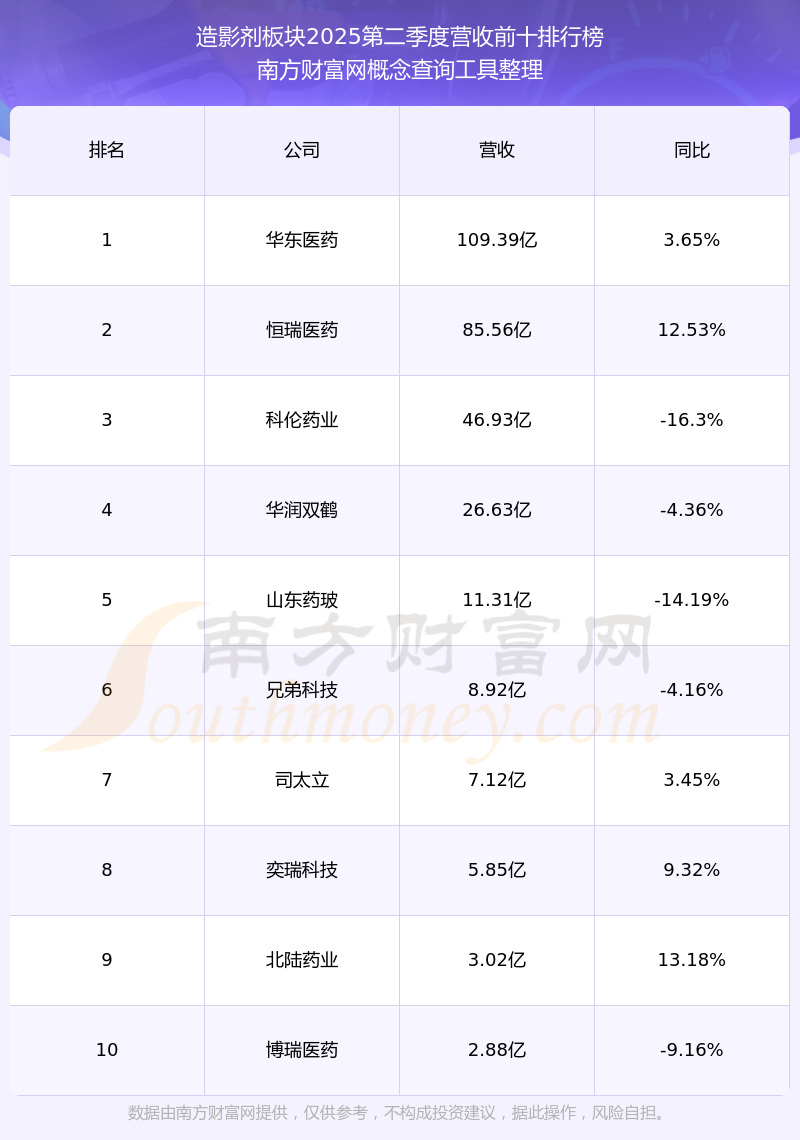 按照南方財富網(wǎng)概念查詢工具統(tǒng)計,該股所屬板塊為造影劑板塊,該板塊共有14只股票,司太立2025第二季度營收在該板塊中排名為第7名,該板塊2025第二季度營收排名前十的股票如下表: