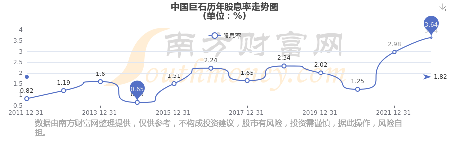 近年中國巨石年度股息率走勢如下圖: