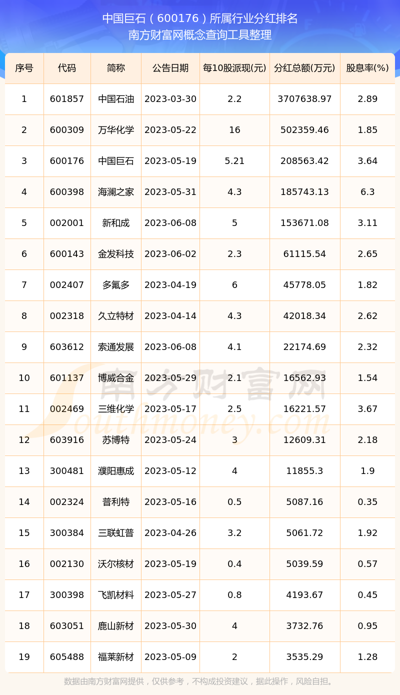 二、中國巨石600176行業(yè)分紅排名
