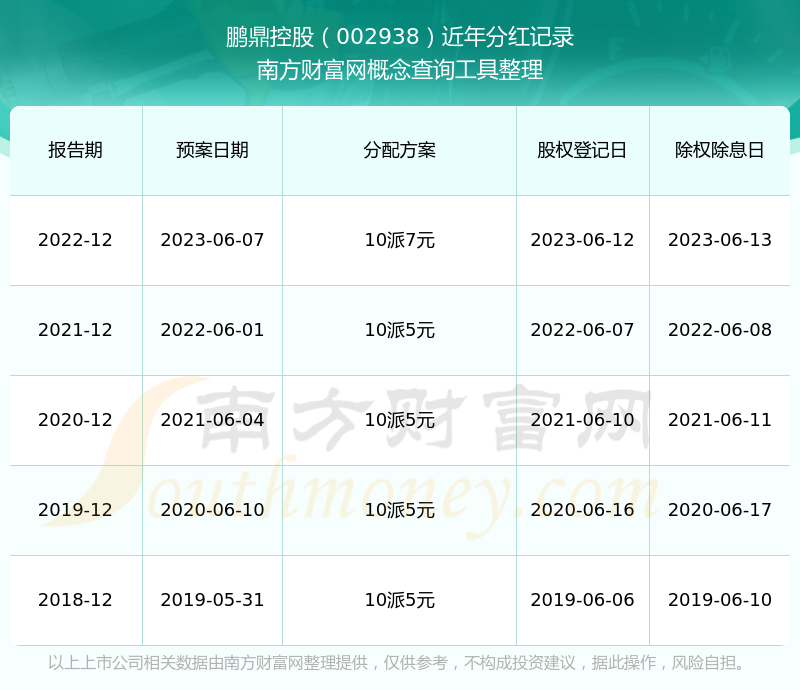 鵬鼎控股最新一次公布的分紅方案為10派7元。本次權(quán)益分派股權(quán)登記日為2023年6月12日,除權(quán)除息日為2023年6月13日,派息日為2023年6月13日。
