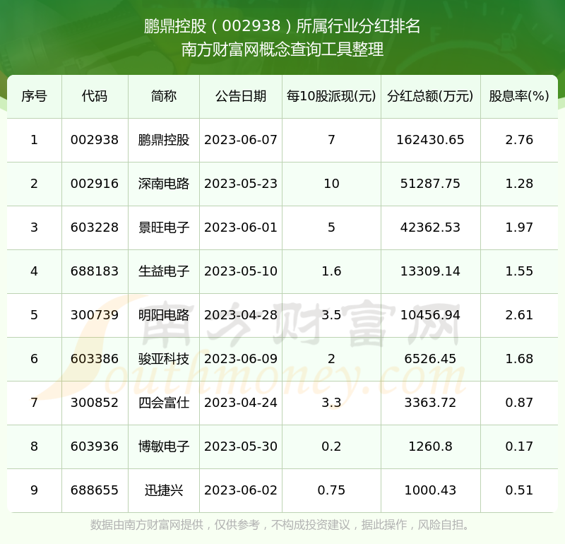 二、鵬鼎控股002938行業(yè)分紅排名