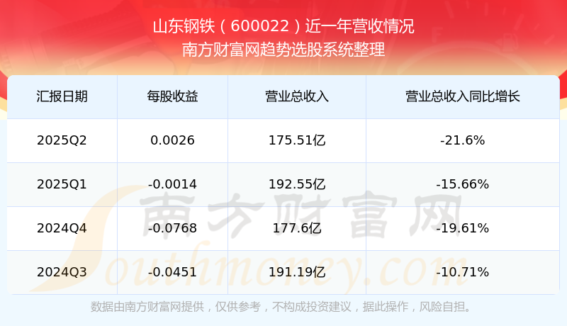 在2025年第二季度,山東鋼鐵的業(yè)績表現(xiàn),主營業(yè)務(wù)收入達(dá)到175.51億元,實(shí)現(xiàn)了-21.6%的同比增長率。同時,公司歸母凈利潤錄得2694.07萬元,同比增長108.15%。