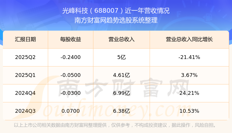 光峰科技(688007)披露2025年第二季度報告,報告期實現(xiàn)營收5億元,同比-21.41%;歸母凈利潤-1.1億元,同比-225.81%;扣非凈利潤-2220.69萬元,同比-272.73%;基本每股收益-0.24元。