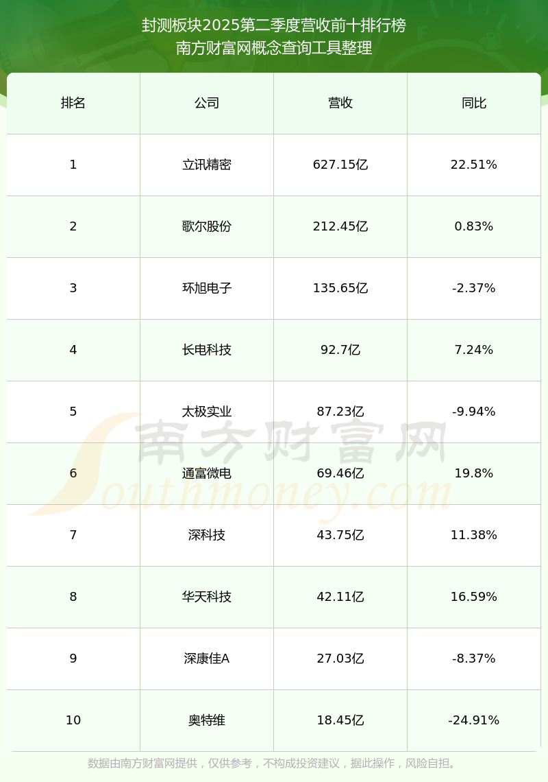 按照南方財富網(wǎng)概念查詢工具統(tǒng)計,該股所屬板塊為封測板塊,該板塊共有39只股票,佰維存儲2025第二季度營收在該板塊中排名為第39名,該板塊2025第二季度營收排名前十的股票如下表: