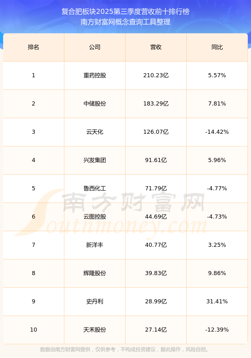 按照南方財(cái)富網(wǎng)概念查詢工具統(tǒng)計(jì),該股所屬板塊為復(fù)合肥板塊,該板塊共有44只股票,紅四方2025第三季度營(yíng)收在該板塊中排名為第32名,該板塊2025第三季度營(yíng)收排名前十的股票如下表: