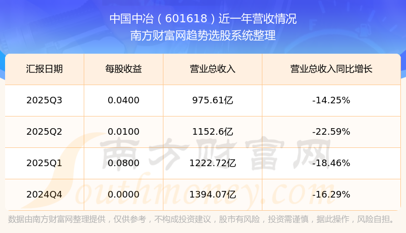 中國(guó)中冶2025年第三季度財(cái)報(bào)顯示,公司主營(yíng)收入975.61億元,同比-14.25%;歸母凈利潤(rùn)8.71億元,同比-67.52%;扣非凈利潤(rùn)7.24億元,同比-69.88%;