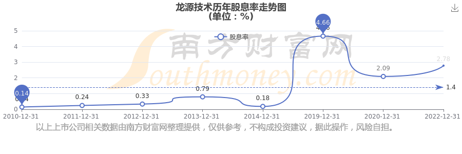 近年龍?jiān)醇夹g(shù)年度股息率走勢(shì)如下圖: