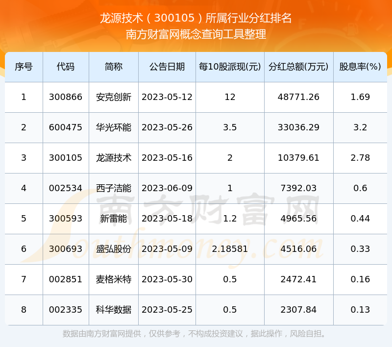 二、龍?jiān)醇夹g(shù)300105行業(yè)分紅排名