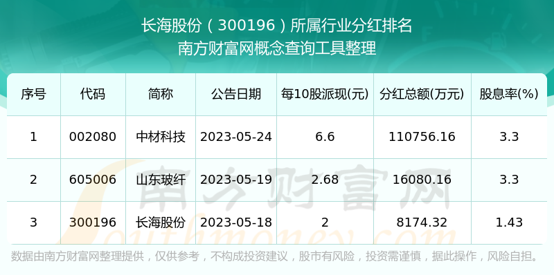 按照南方財富網(wǎng)趨勢選股系統(tǒng)統(tǒng)計,長海股份所屬行業(yè)為玻璃纖維行業(yè),玻璃纖維行業(yè)分紅排名情況如下表: