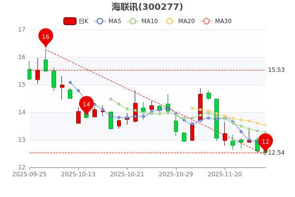 2025年第三季度顯示,海聯(lián)訊公司實(shí)現(xiàn)營(yíng)收約4955.75萬(wàn)元,同比增長(zhǎng)-6.09%; 凈利潤(rùn)約124.4萬(wàn)元,同比增長(zhǎng)43.83%;基本每股收益0.01元。