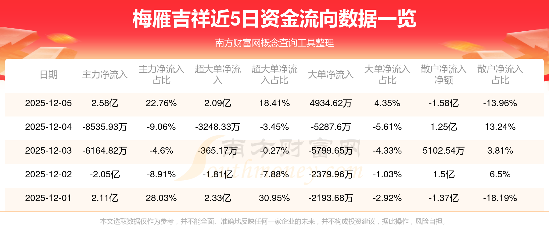12月5日該股主力資金凈流入2.58億元,超大單資金凈流入2.09億元,大單資金凈流入4934.62萬元,中單資金凈流出9990.26萬元,散戶資金凈流出1.58億元。