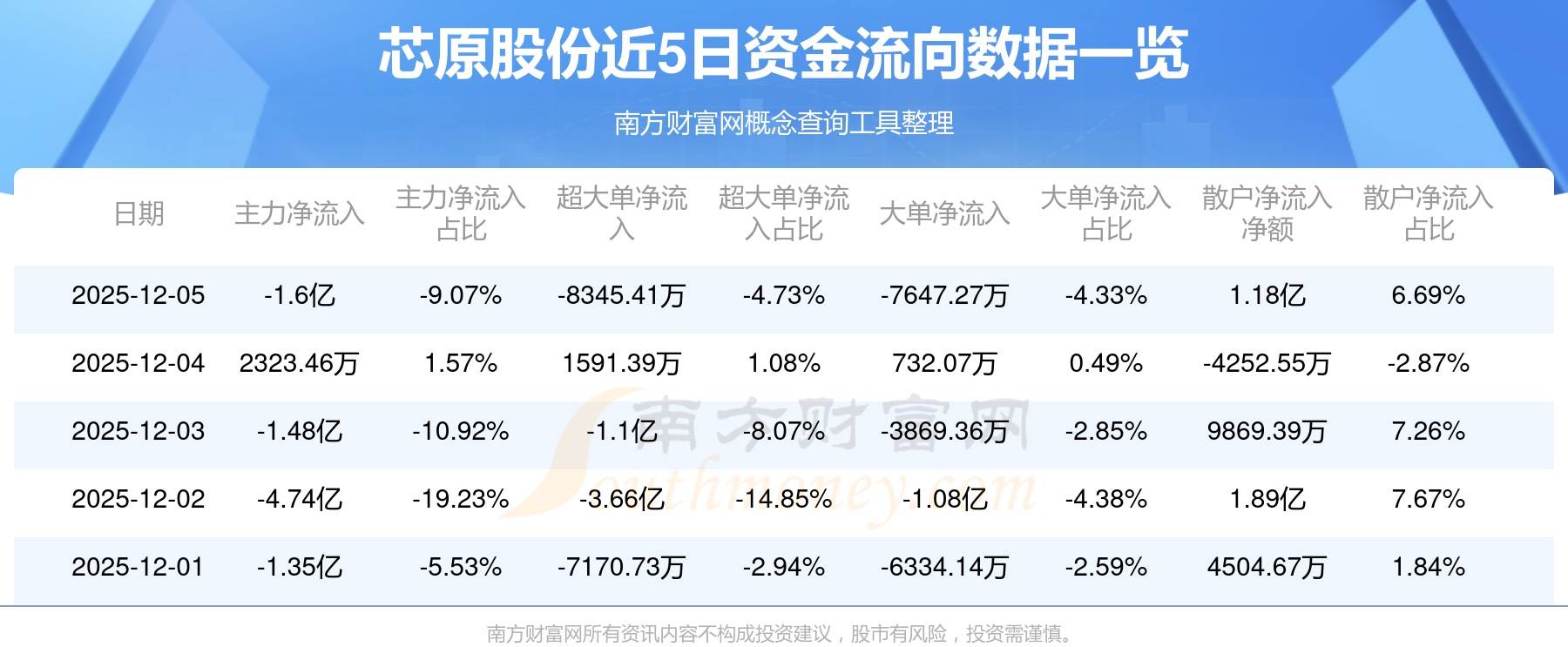 12月5日消息,芯原股份12月5日主力凈流出1.6億元,超大單凈流出8345.41萬元,大單凈流出7647.27萬元,散戶凈流入1.18億元。