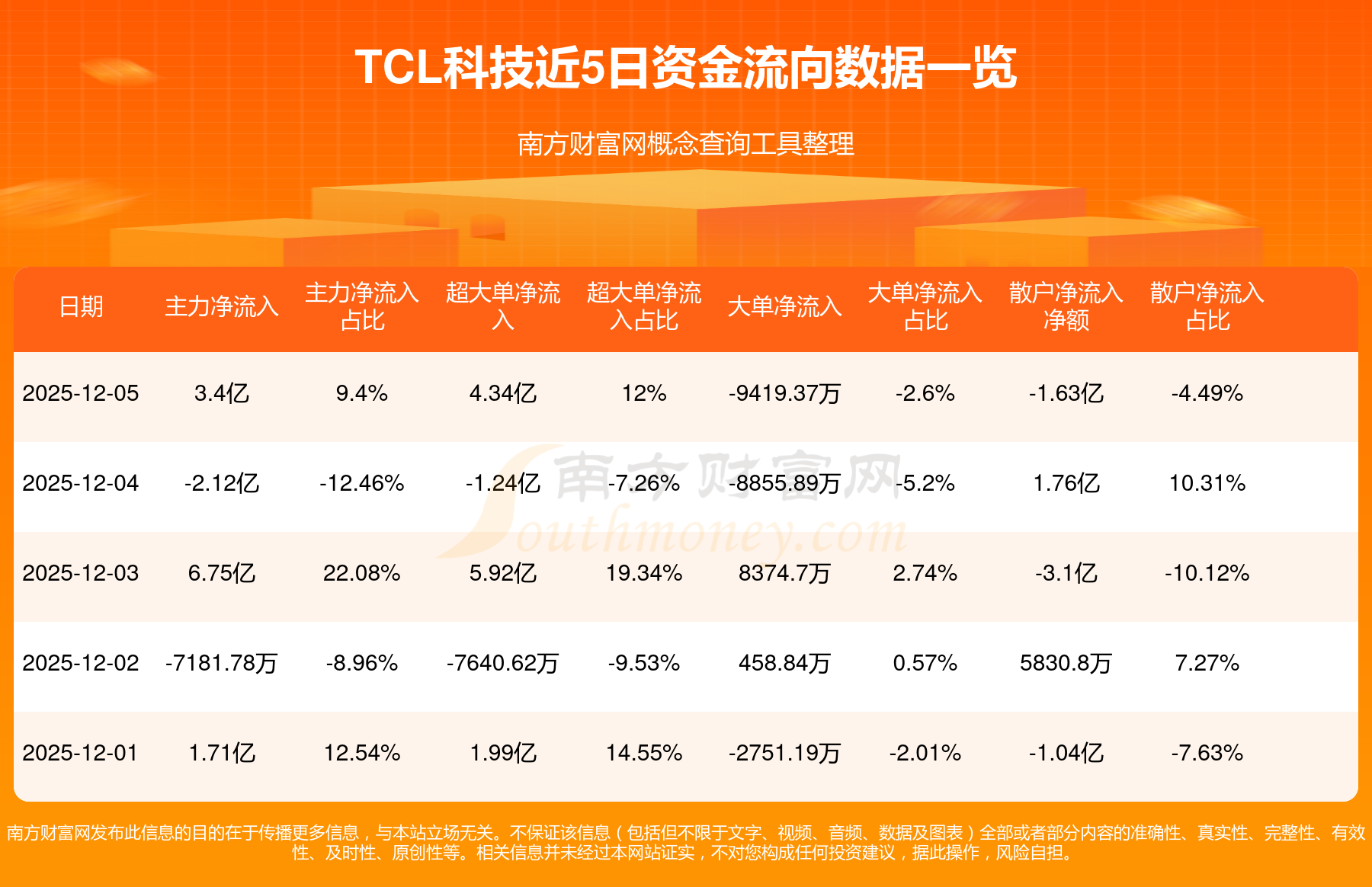 資金流向數(shù)據(jù)方面,12月5日主力資金凈流流入3.4億元,超大單資金凈流入4.34億元,大單資金凈流出9419.37萬(wàn)元,散戶資金凈流出1.63億元。