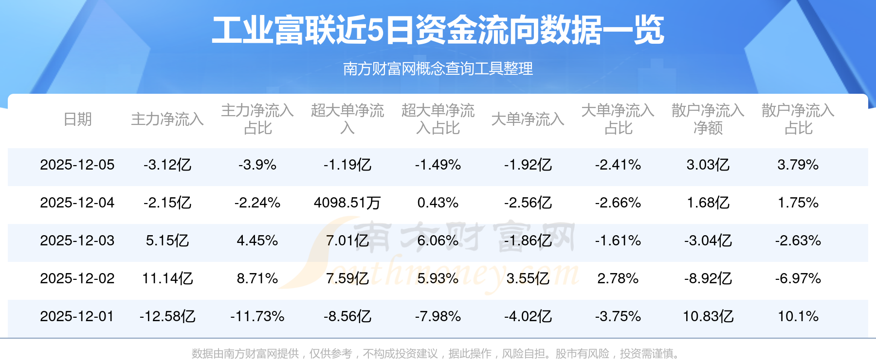 12月5日消息,工業(yè)富聯(lián)主力資金凈流出3.12億元,超大單資金凈流出1.19億元,散戶資金凈流入3.03億元。