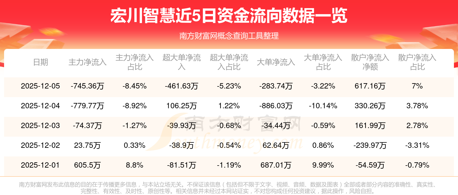 12月5日消息,宏川智慧資金凈流出745.36萬(wàn)元,超大單資金凈流出461.63萬(wàn)元,換手率1.77%,成交金額8819.06萬(wàn)元。