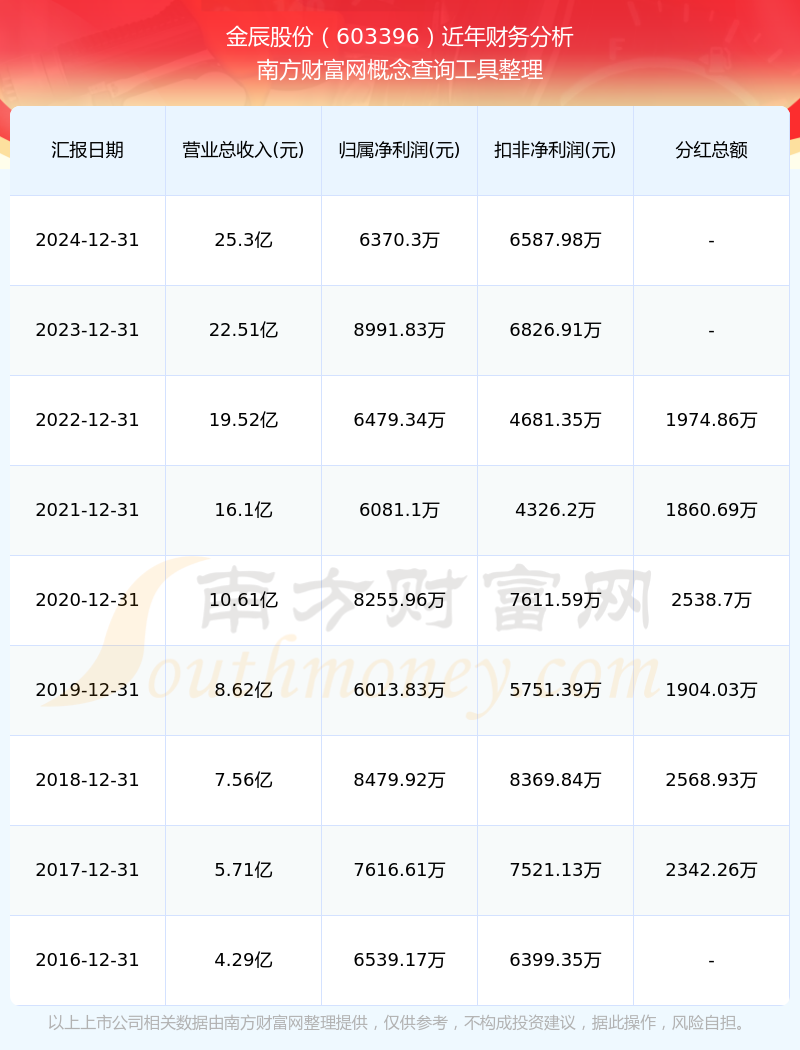 金辰股份公司2024年實(shí)現(xiàn)營(yíng)業(yè)收入25.3億元,同比增長(zhǎng)12.39%;凈利潤(rùn)6370.3萬(wàn)元,同比增長(zhǎng)-29.15%;毛利率26.73%。