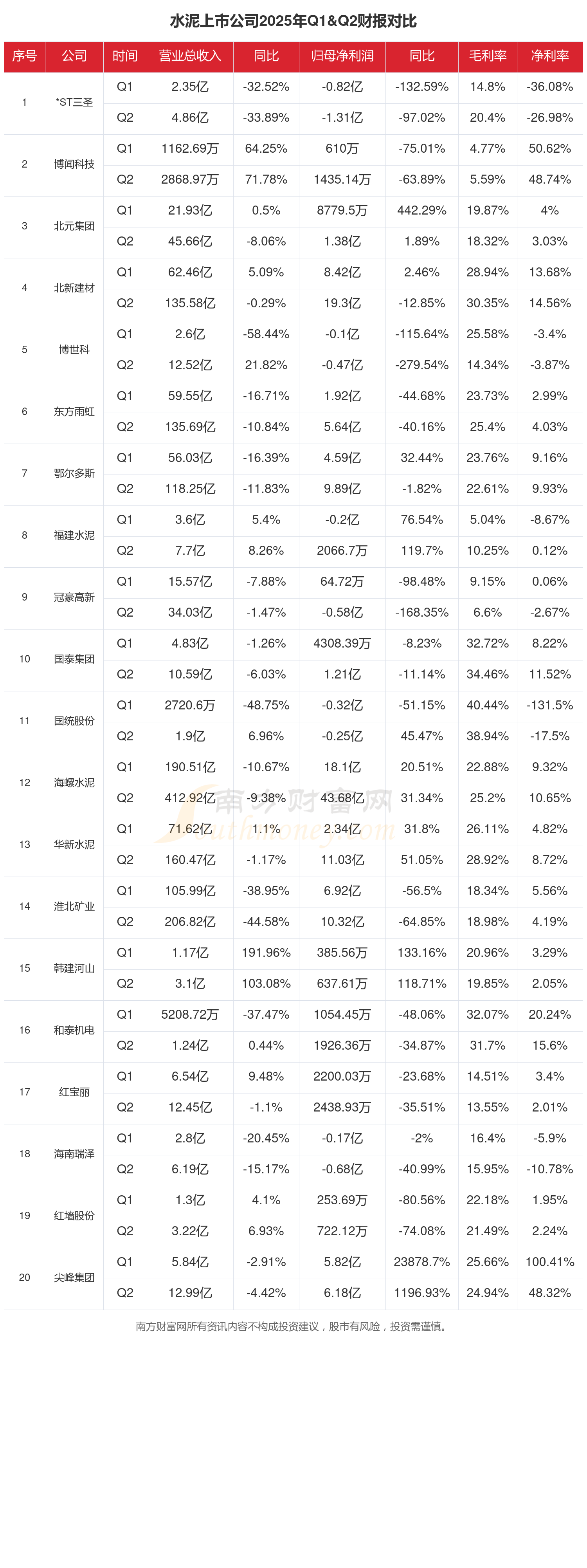 上峰水泥(000672):2025年第二季度季報顯示,上峰水泥營收同比增長-10.94%至13.21億元;凈利潤為1.67億,同比增長6.86%,毛利潤為4.62億,毛利率34.96%。