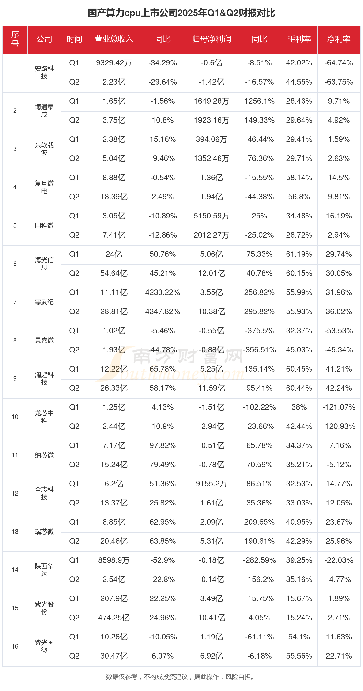 根據(jù)南方財(cái)富網(wǎng)概念查詢工具數(shù)據(jù)統(tǒng)計(jì),A股16家國產(chǎn)算力cpu相關(guān)上市公司已發(fā)布2025年上半年財(cái)報(bào)。2025年上半年大家都過得怎么樣?一起來看看吧。