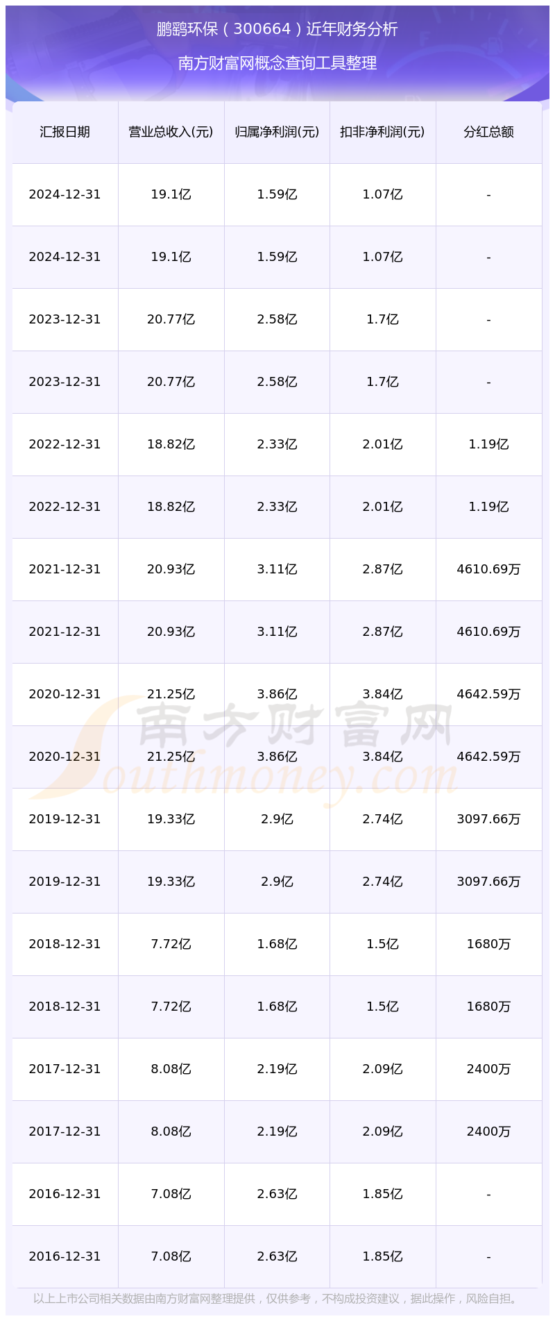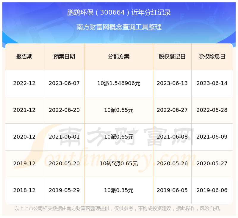 鵬鷂環(huán)保歷年分紅派息情況如下表所示: