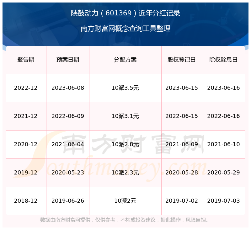 陜鼓動力最新一次公布的分紅方案為10派3.5元。本次權(quán)益分派股權(quán)登記日為2023年6月15日,除權(quán)除息日為2023年6月16日,派息日為2023年6月16日。