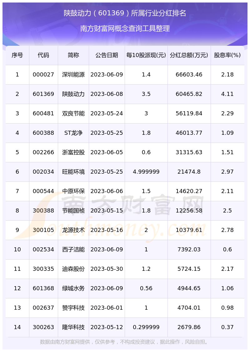 按照南方財富網(wǎng)趨勢選股系統(tǒng)統(tǒng)計,陜鼓動力所屬行業(yè)為核能核電行業(yè),核能核電行業(yè)分紅排名情況如下表: