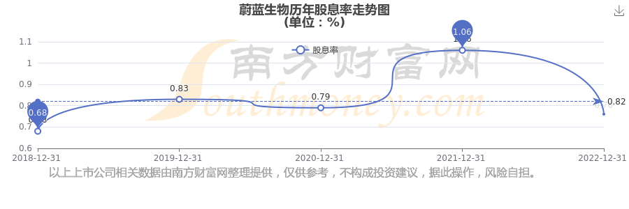 蔚藍(lán)生物歷年股息率走勢如下圖: