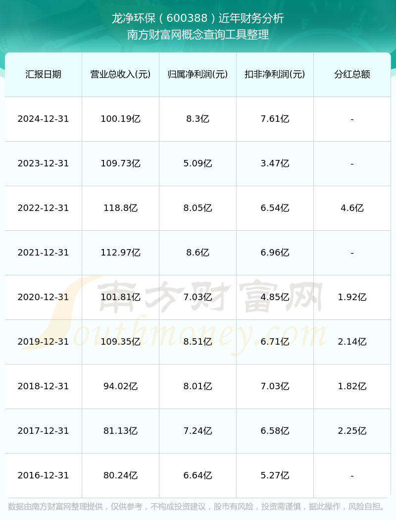 龍凈環(huán)保公司2024年實現(xiàn)營收100.19億元,凈利潤8.3億元,毛利率24.84%。
