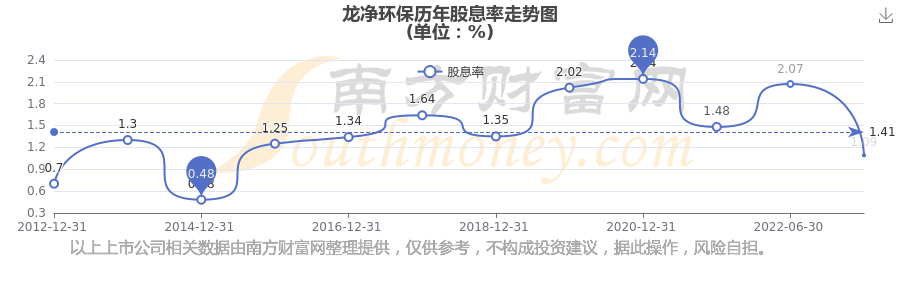 龍凈環(huán)保歷年股息率走勢如下圖: