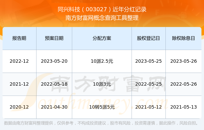 同興科技歷年分紅派息情況如下表所示:
