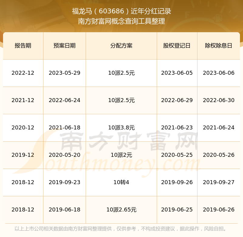 福龍馬歷年分紅派息情況如下表所示: