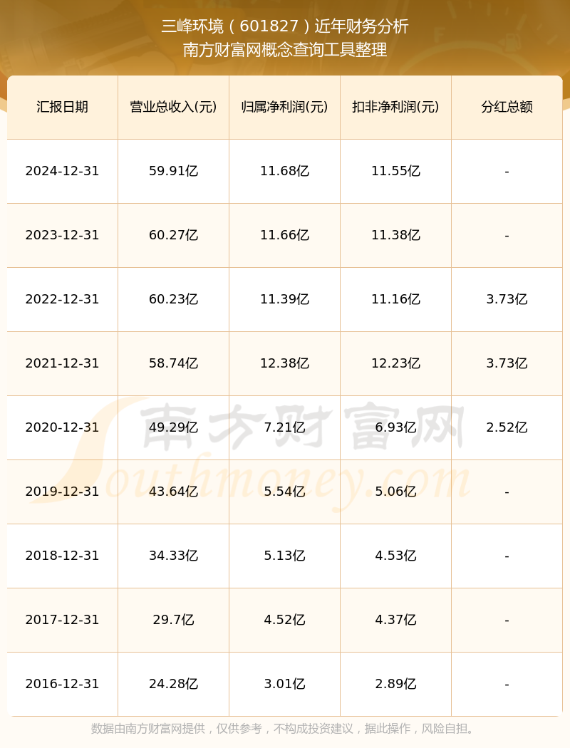 2024年三峰環(huán)境總營(yíng)收59.91億,同比增長(zhǎng)-0.59%;凈利潤(rùn)11.68億,同比增長(zhǎng)0.2%;銷售毛利率33.18%。