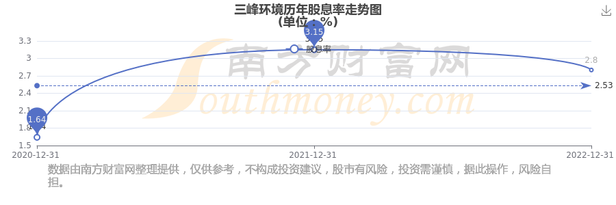 三峰環(huán)境歷年股息率走勢(shì)如下圖: